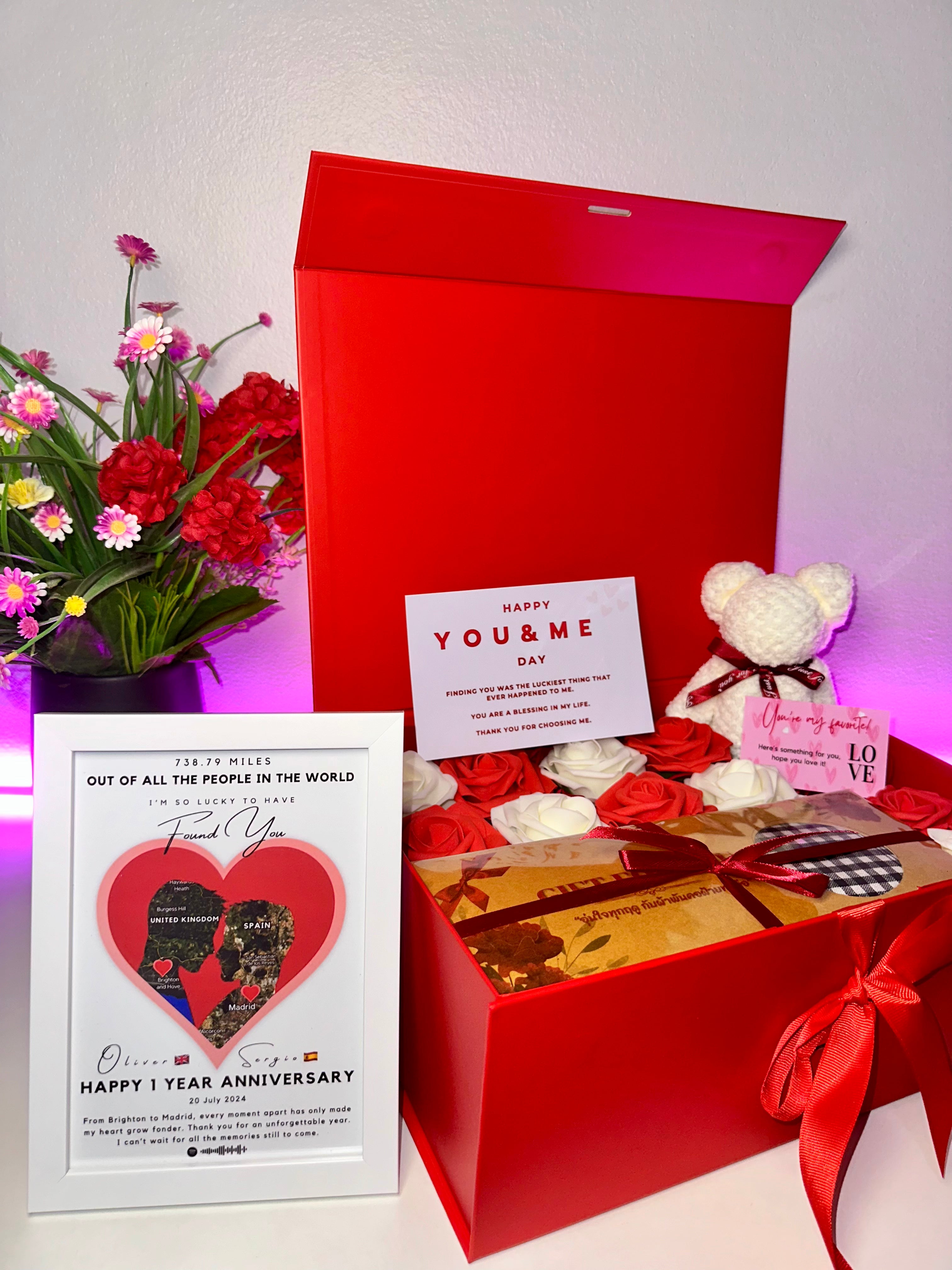 Choose your product and enter your custom details into the fields provided. If you choose framed print, you’ll have the option to upgrade via one of our gift box add-ons, for an unforgettable gifting experience. Simply add your framed print and the gift box add-on to the cart and then checkout.