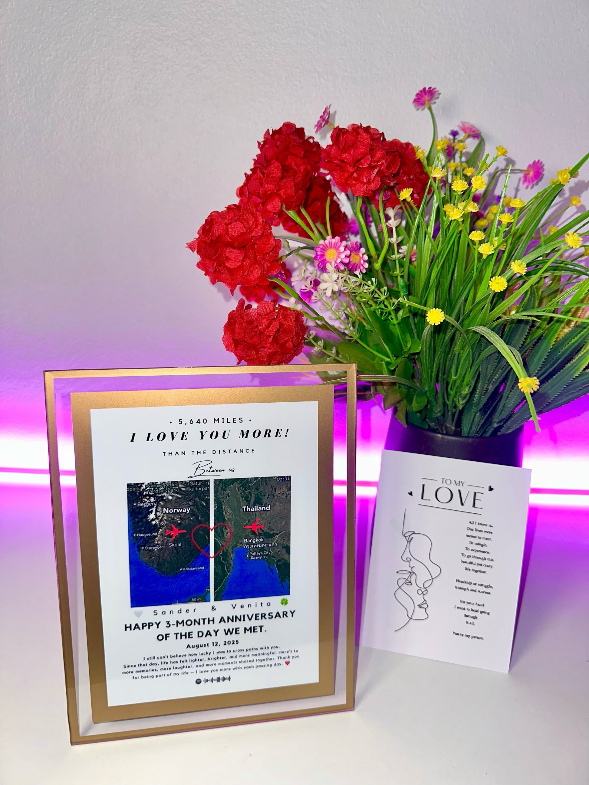 Celebrate your love across the miles with our Only a Flight Away custom print, an alternate design for long distance couples looking to celebrate their love. Perfect for anniversaries, birthdays, Valentine’s Day, or simply to honour your relationship, this piece captures the beauty of love that knows no distance.